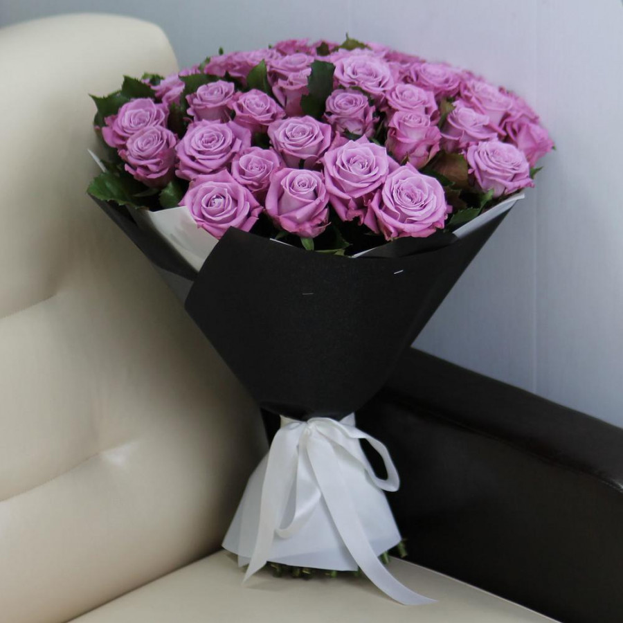 На фото букет из 51 фиолетовой розы. В составе: роза 51 шт, дизайнерская упаковка 1 шт, атласная лента 1 шт, . Все цветы свежие и ароматные, букет красиво оформлен и отлично подходит для подарка. Доступна доставка цветов или самовывоз.