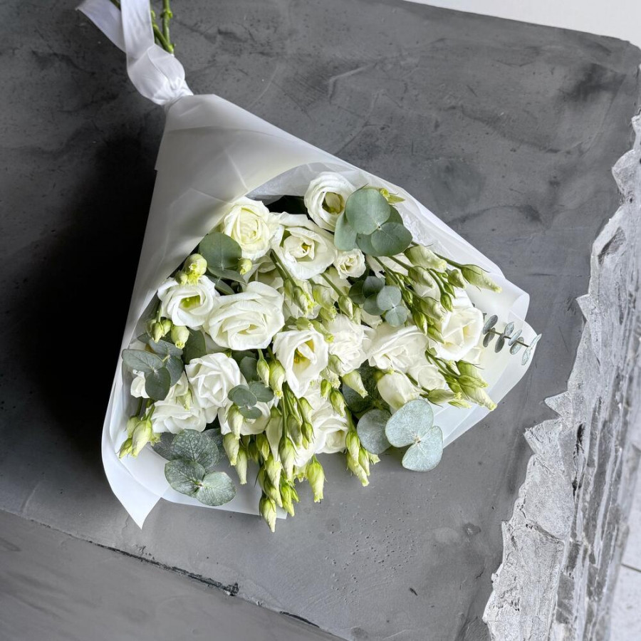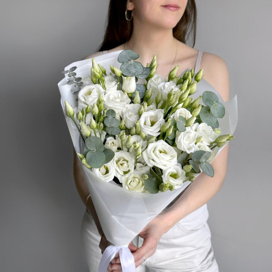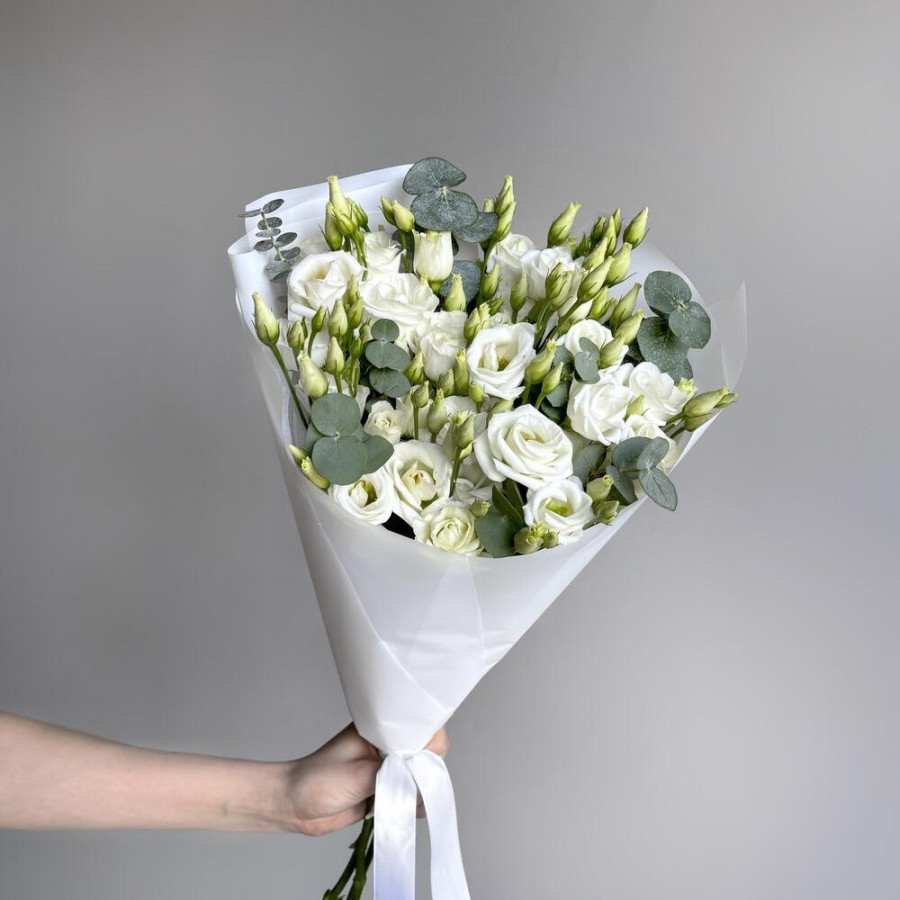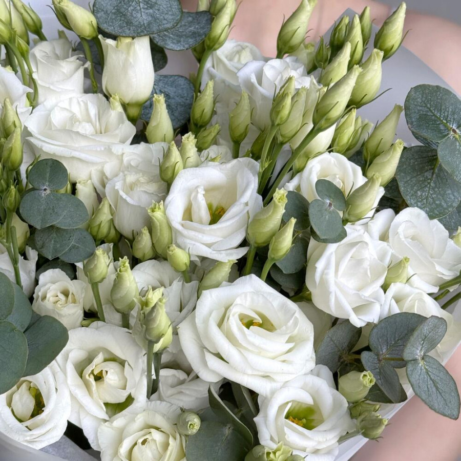 Букет из 7 белых эустом и эвкалипта в Кузнецке