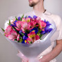 Букет из синих ирисов из розовых альстромерий в Кузнецке