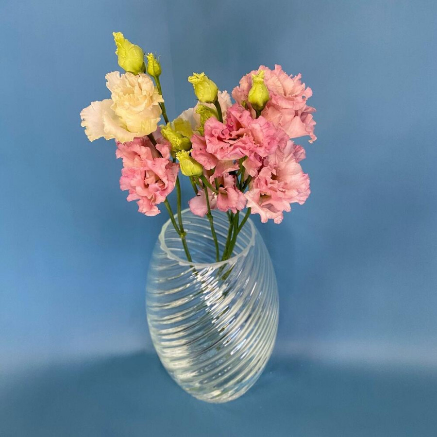 На фото стеклянная большая ваза для цветов 28 см. В составе: . Все цветы свежие и ароматные, букет красиво оформлен и отлично подходит для подарка. Доступна доставка цветов или самовывоз.